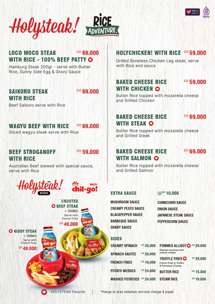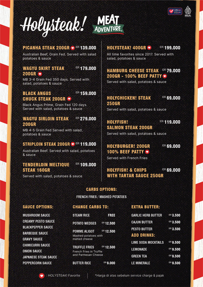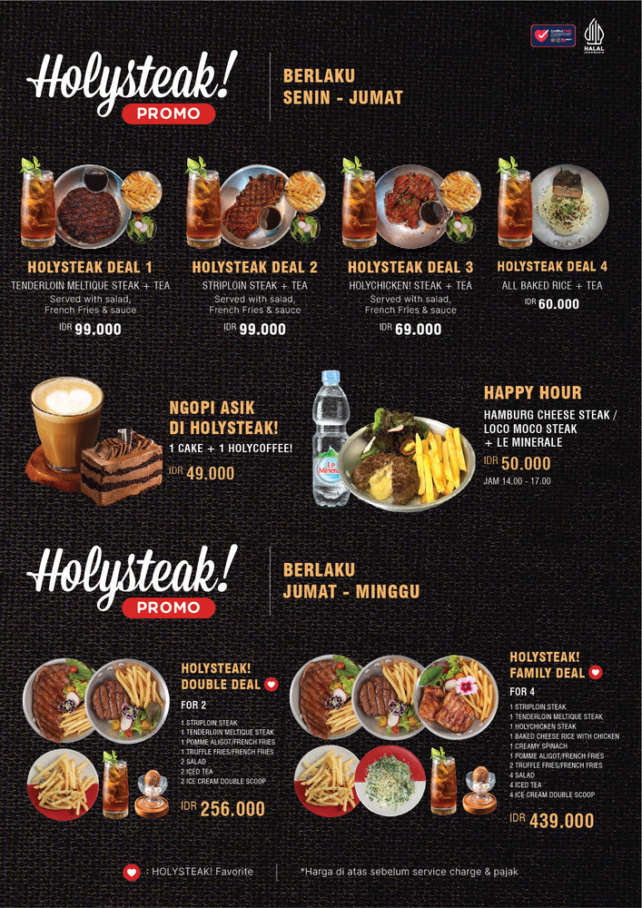 Nikmati berbagai hidangan daging dan steak enak di HOLYSTEAK!