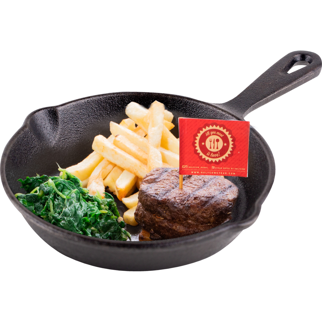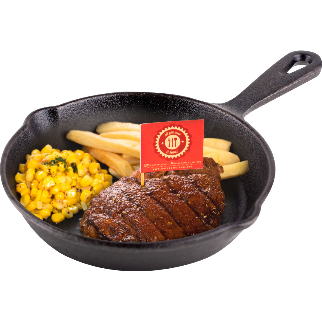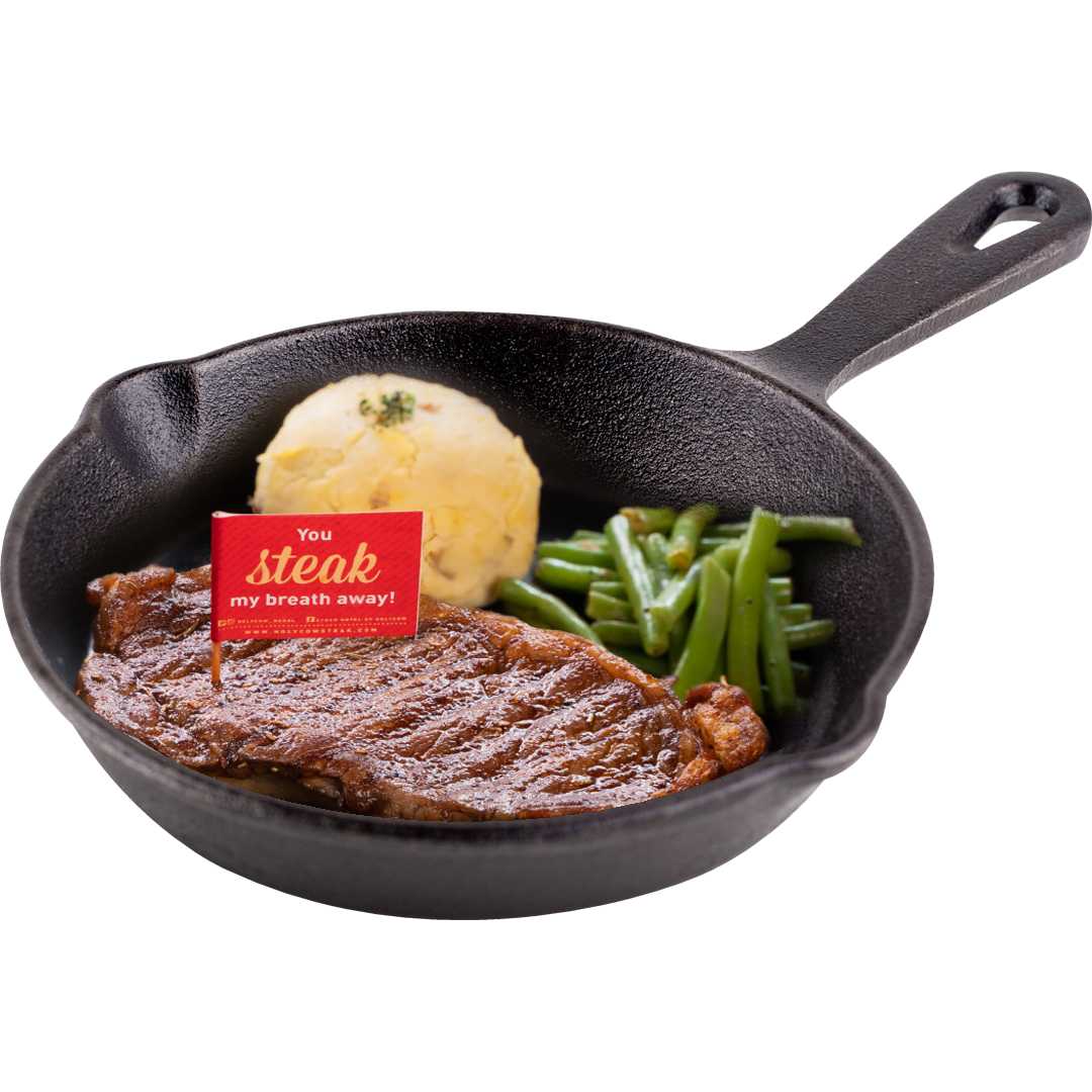 Black Angus Sirloin, 200 gr. Disajikan dengan peppercorns sauce, french fries dan salad