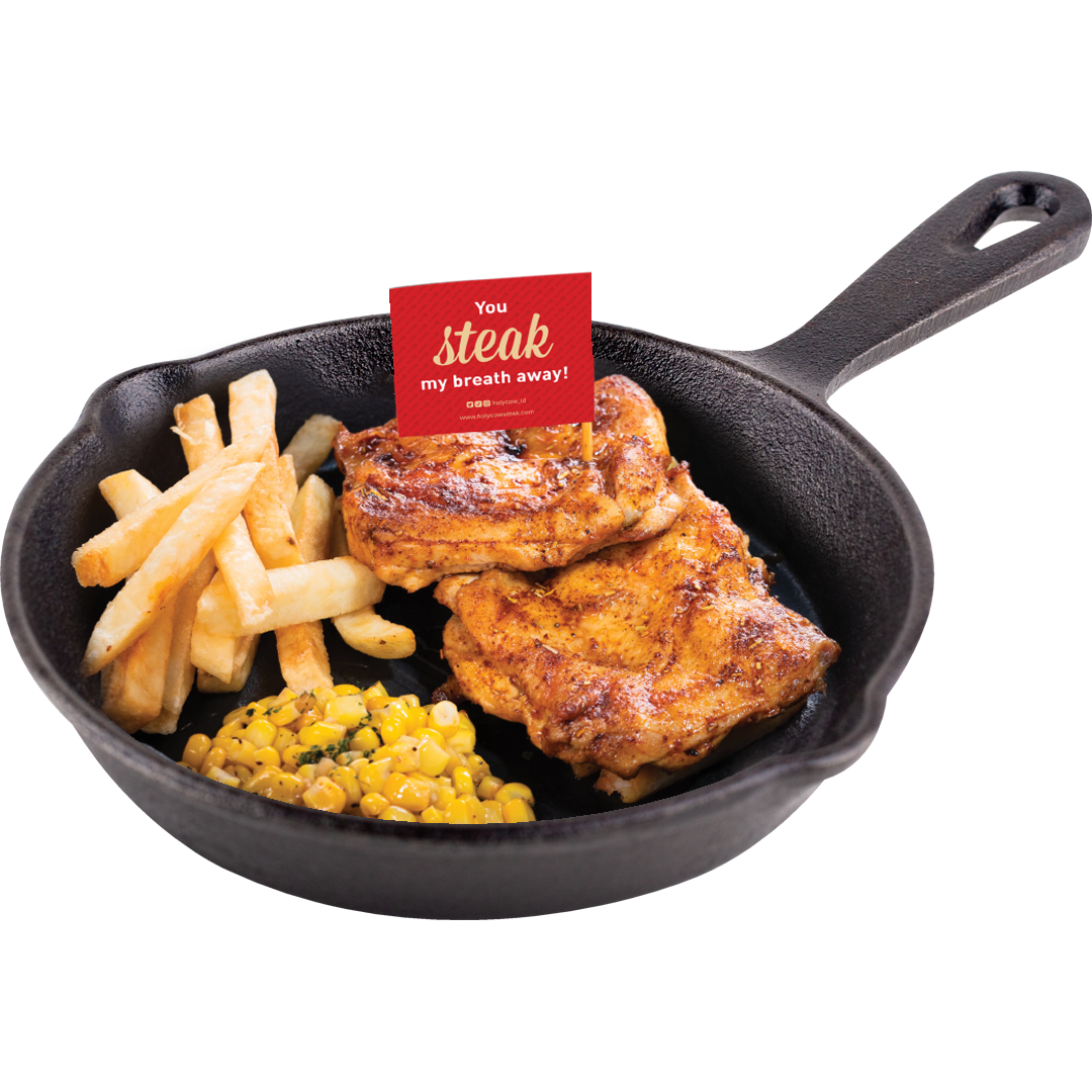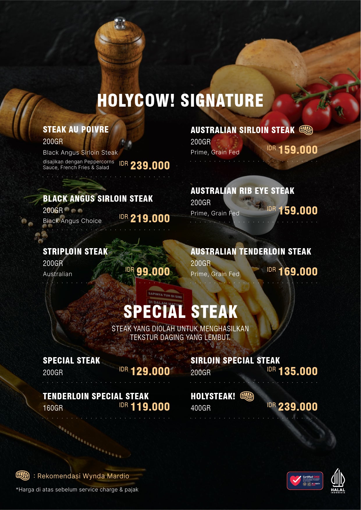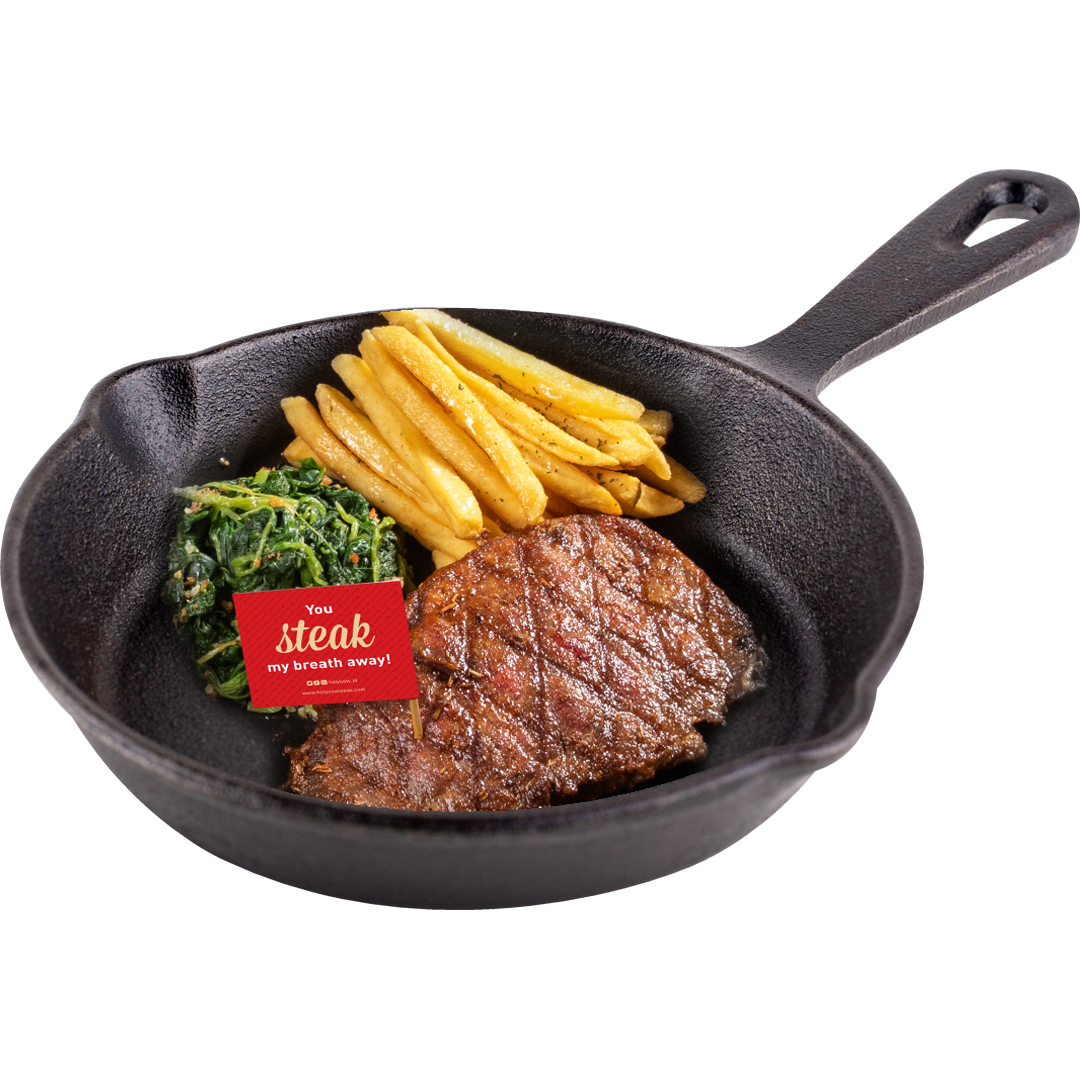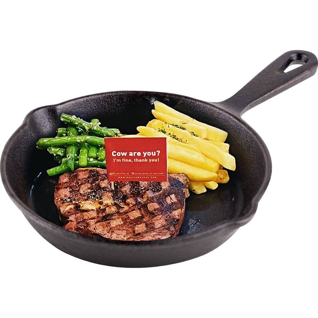 Black Angus Sirloin, 200 gr. Disajikan dengan peppercorns sauce, french fries dan salad