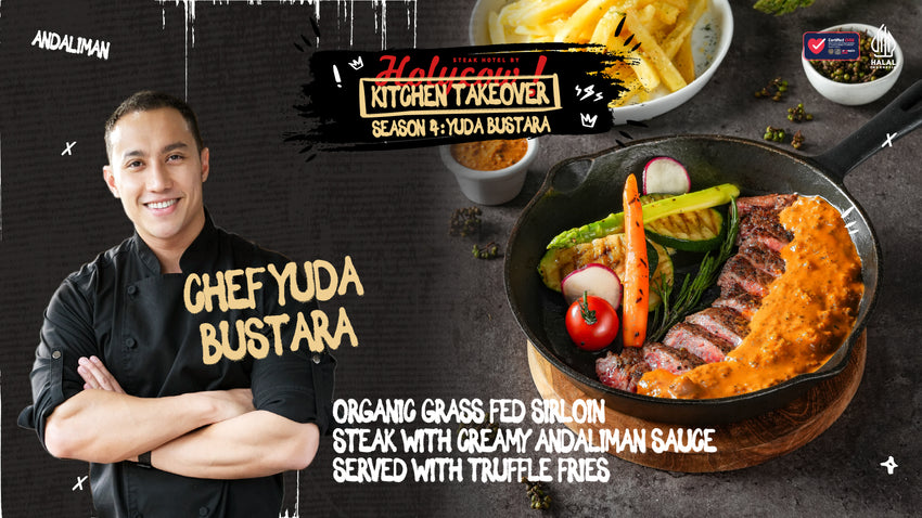Chef Yuda Bustara mengatakan, “Saya sangat antusias bisa bekerja sama dengan Steak Hotel by HOLYCOW!, pelopor steak house lokal yang tidak henti-hentinya berinovasi menu. Sebagai seorang Chef, saya selalu mengedepankan penggunaan bahan dan cara masak yang lebih sehat. Menu Organic Grass Fed Sirloin Steak with Creamy Andaliman Sauce, merupakan wujud kecintaan saya dalam mengolah dan menikmati steak berkualitas dengan sentuhan rasa lokal. Saya berharap menu ini dapat memberikan sensasi rasa baru yang segar dan berbeda bagi para penggemar steak.”