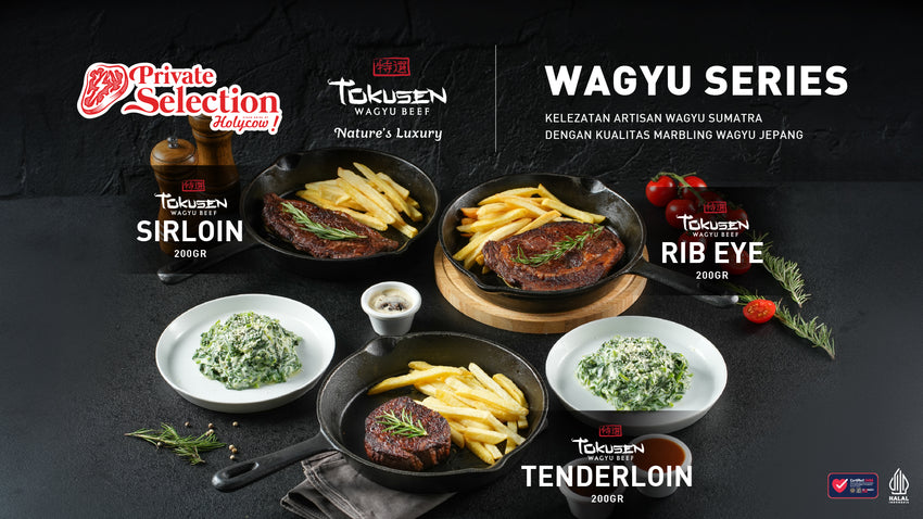 Kolaborasi spesial Steak Hotel by HOLYCOW! dan Tokusen yang menyajikan Artisan Wagyu Sumatra dengan kualitas Marbling Wagyu Jepang. Tersedia 3 primary cut (Sirloin, Rib Eye, dan Tenderloin) yang bisa Carnivores nikmati dengan Creamy Spinach, Truffle Fries dan Steak Sauce.