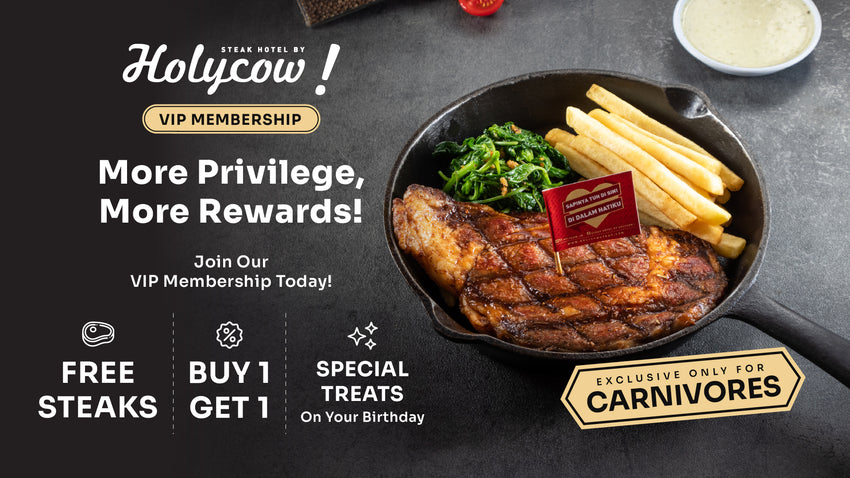 Gabung menjadi HOLYCOW! VIP Membership sekarang dan nikmati berbagai rewards menarik spesial untuk Carnivores!