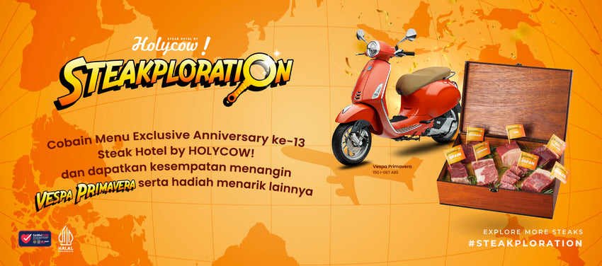@holycow_id Selamat Hari Sabtu, Carnivores! Waktunya cobain 7 daging dari 7 negara spesial di menu Steakploration! Mincow udah nyobain loh dan semua dagingnya enak-enak banget! juicy, lembut dan empuknya top markotop👌 Giliran Carnivores yang cobain menu Steakploration dan dapetin kesempatan menangin hadiah-hadiah menarik mulai dari Vespa Primavera, liburan GRATIS ke Labuan Bajo, iPad Pro M2 11” 2022 dan Voucher Steak Hotel by HOLYCOW! @2.500.000!🥳 Langsung aja cobain di TKP Steak Hotel by HOLYCOW!✨ #Steakploration #holycow13thanniversary #holycowbirthday #holycowsteakploration #steakhotelbyholycow #holycowbhadranayagroup #fyp #xyzbca ♬ Obsessed With You x All About Him - ARNEL REMIX